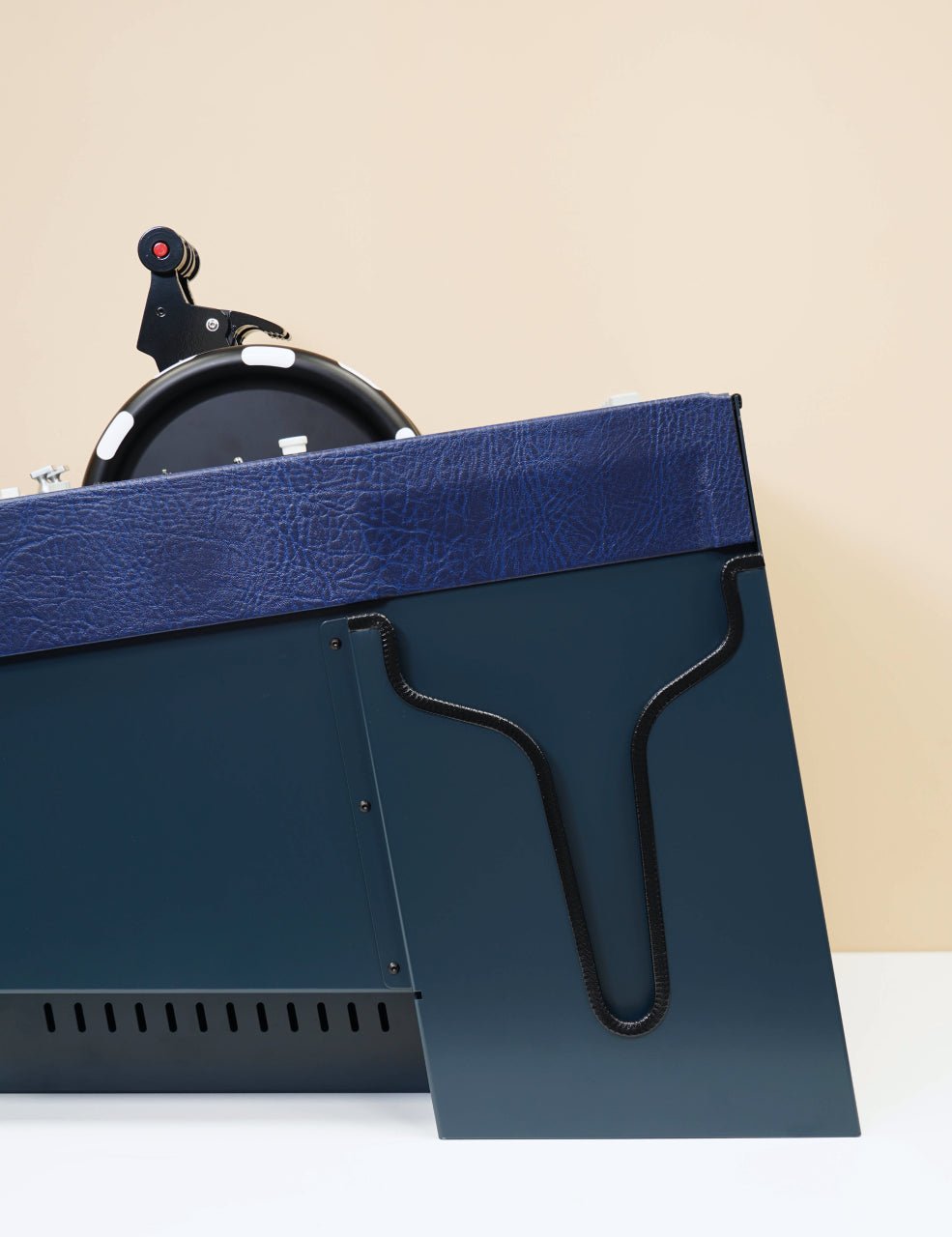 - Aluminium box with foot rest and fake leather finish,